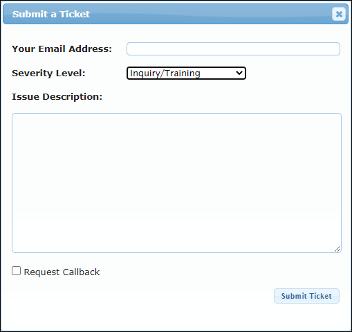 2. Enter your email address and a description of the issue you are facing, select a category for the issue, and click Submit Ticket.