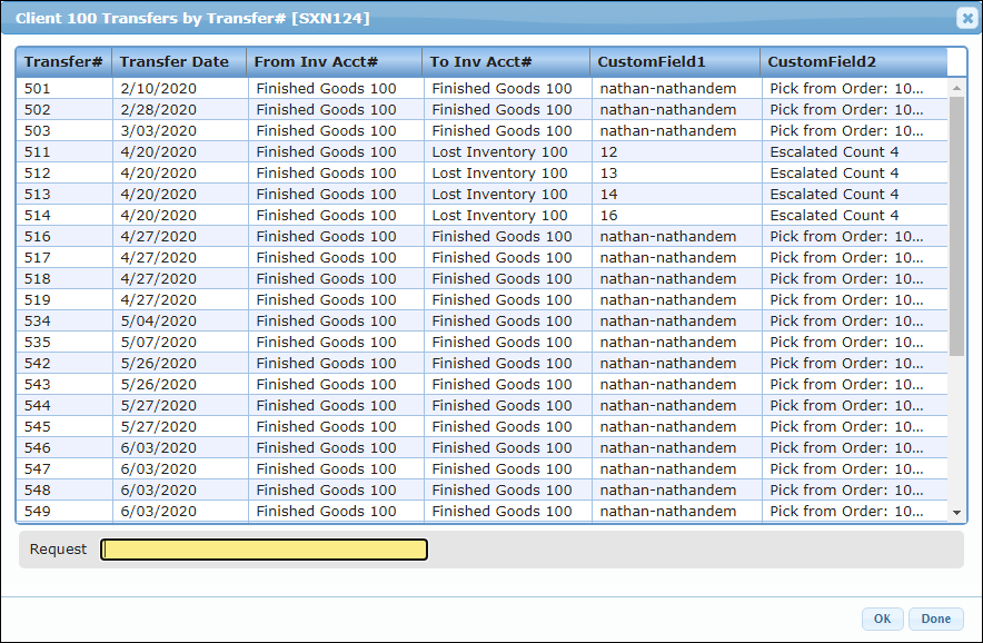 2. Click the Transfer# for which you want to view the history inquiries and click OK.