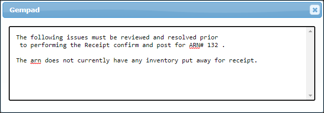 2. To view the exception for a receipt, click the receipt and then click OK.